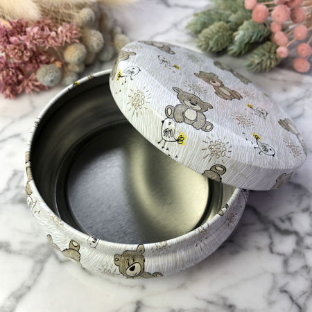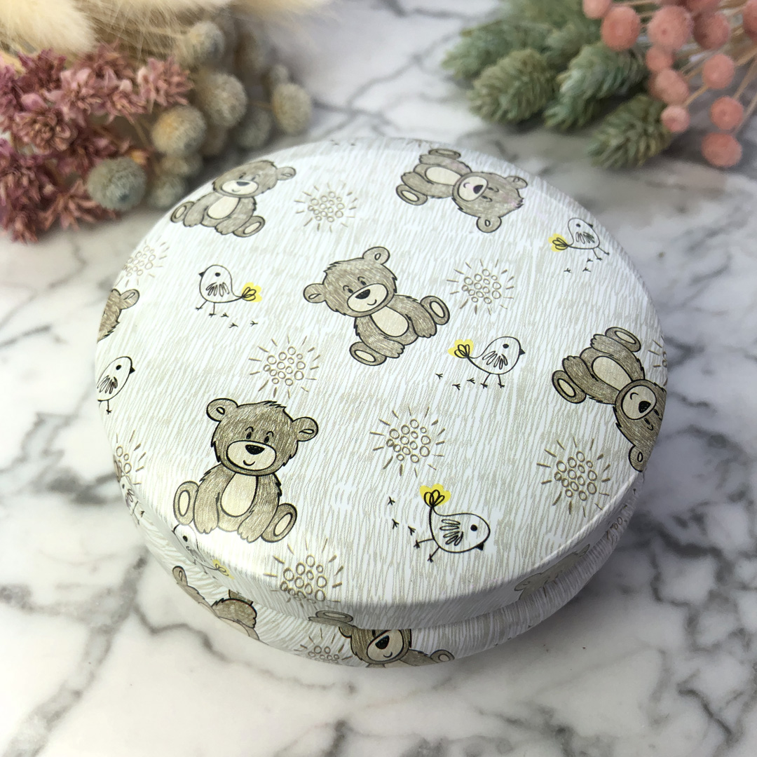 Pudełeczko podarunkowe metalowa puszka w misie na różaniec BOX002